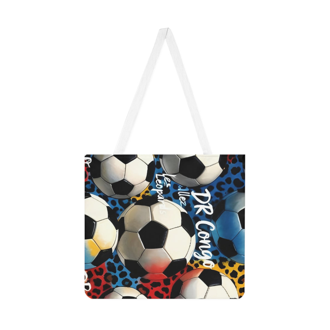 Soccer Pattern Shoulder Tote Bag — Colorful Leopard Print Soccer Ball Design