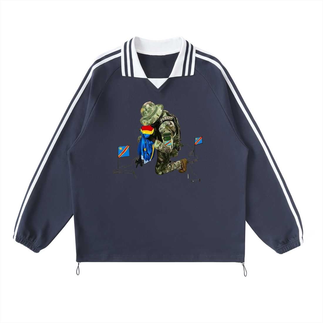 Contrast Striped Lapel Collar Sweatshirt