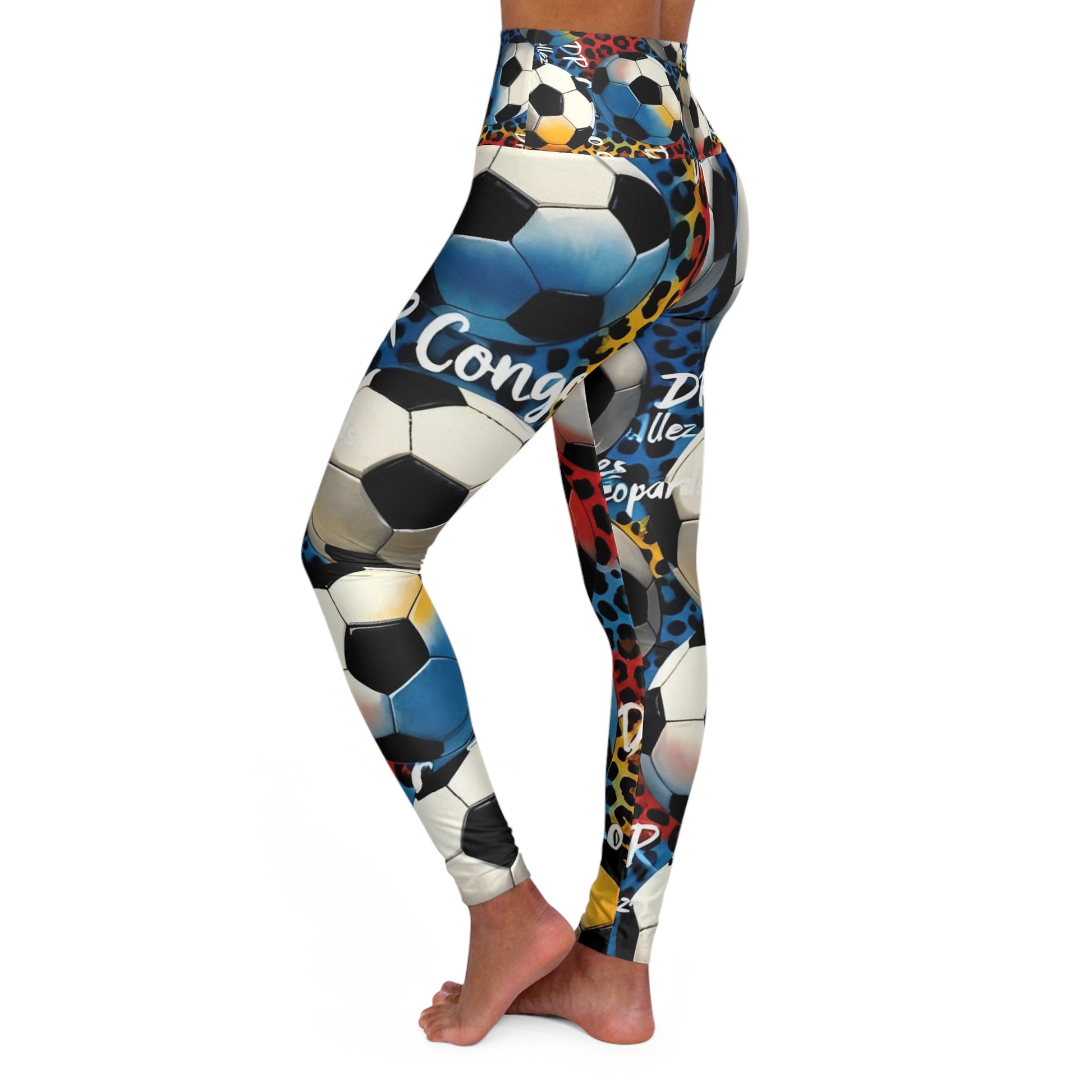 Soccer Ball Collage Leggings | Leopard Print Football Pattern
